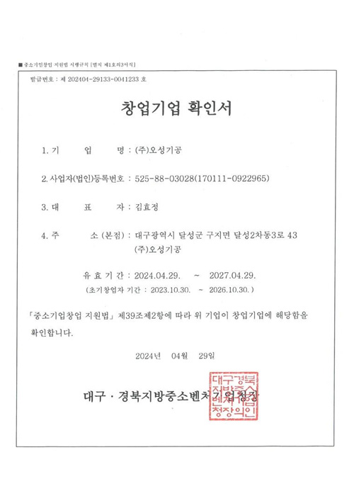 창업기업 확인서