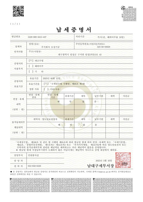 국세완납증명서