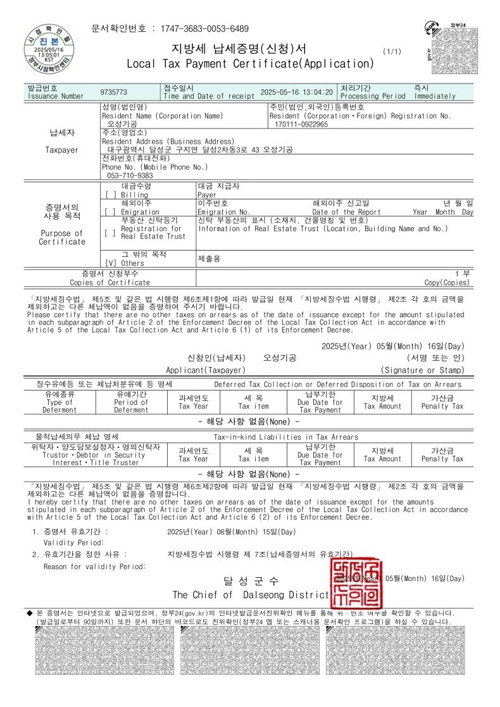지방세완납증명서