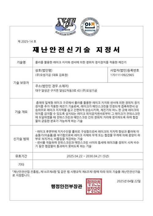NET 재난안전신기술 지정서