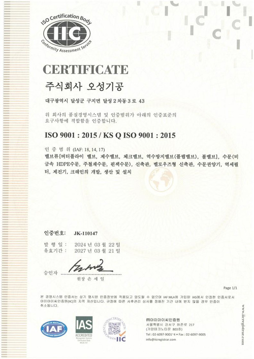 ISO9001 인증서
